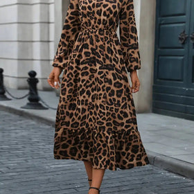 Damen Maxikleid mit tierischem Muster und fließendem Schnitt Amawinc