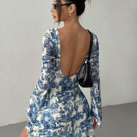 Damen Minikleid mit tiefem Rückenausschnitt und eleganter Printgestaltung Amawinc