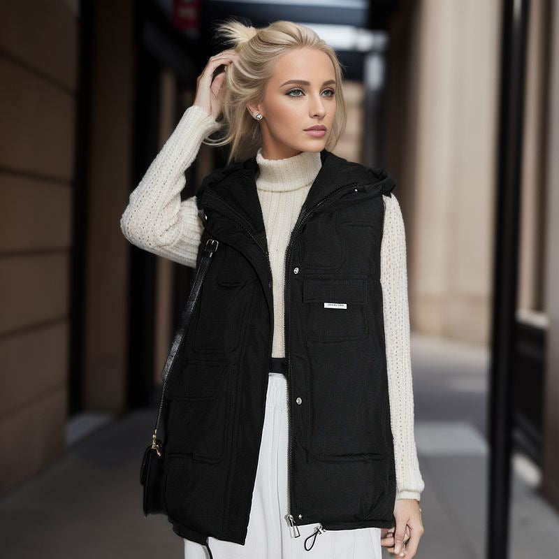 Entdecken Sie die perfekte Ergänzung für Ihre Garderobe mit dieser stilvollen und vielseitigen Damen modischen gesteppte Weste. Ideal für die Übergangszeit bietet sie sowohl Komfort als auch Eleganz.