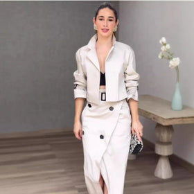Entdecken Sie das modische Jacken- und Rock-Set von Amawinc