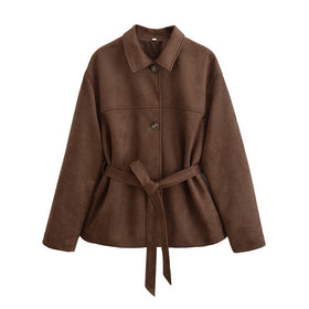 Damen modische Overshirt-Jacke mit Gürtel Amawinc