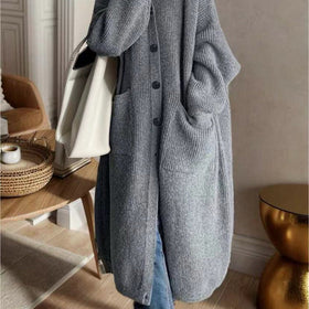 Damen Modische Strickjacke mit großzügigen Taschen und Knopfdetail Amawinc