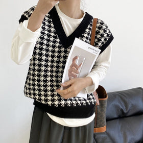 Damen modische Strickweste mit graphischem Hahnentrittmuster Amawinc