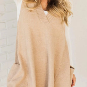 Damen Modische Strickweste mit V-Ausschnitt und praktischen Taschen Amawinc