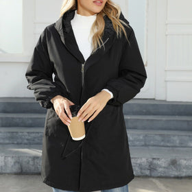Damen Modische Übergangsjacke mit Kapuze und elastischen Bündchen Amawinc