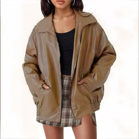 Entdecken Sie die perfekte Kombination aus Stil und Komfort mit der modischen oversized Kunstlederjacke von Amawinc. Diese Jacke eignet sich ideal für die Übergangszeit und bringt einen Hauch von urbanem Chic in jedes Outfit.