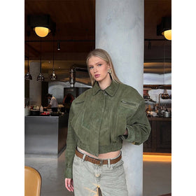 Damen Modische Wildlederjacke mit cropped Schnitt Amawinc