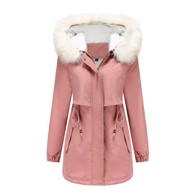 Damen modische Winterjacke mit abnehmbarem Fellkragen Amawinc