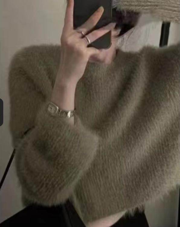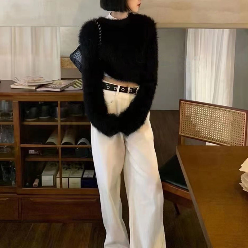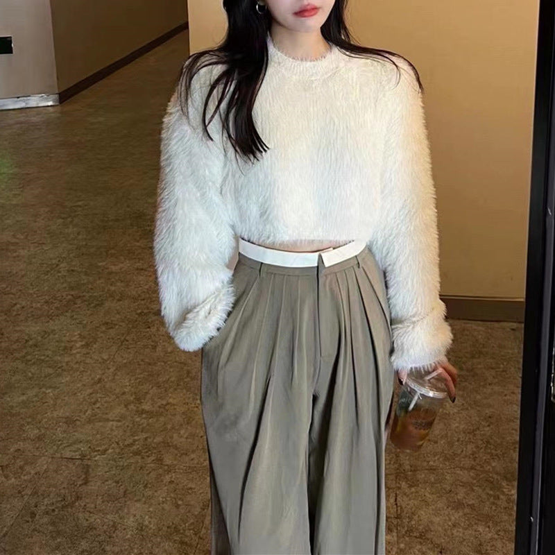 Damen modischer cropped Pullover mit weichem Flausch-Material Amawinc