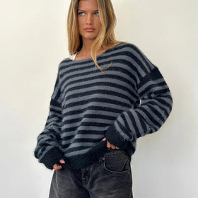Damen modischer gestreifter Pullover mit lockerer Passform Amawinc