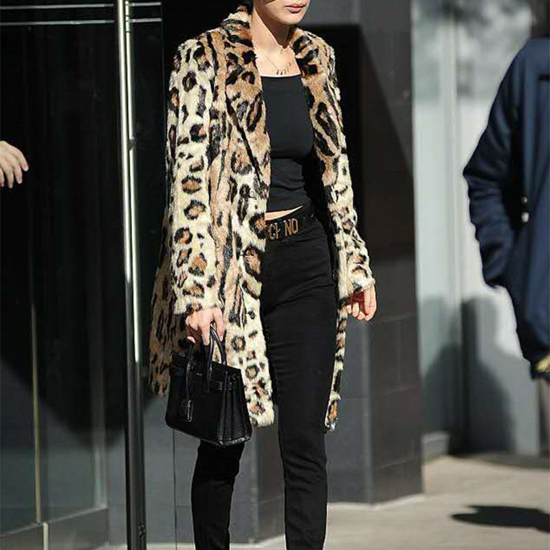Damen Modischer Kunstpelzmantel mit Leopardenmuster Amawinc