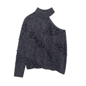 Damen Modischer Oversized Pullover mit asymmetrischem Kragen und strukturiertem Strick Amawinc