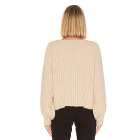 Damen modischer Strickpullover mit überschnittenen Ärmeln und feiner Rippstruktur Amawinc