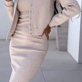Damen modischer Sweatkleid und Jacke Set Amawinc