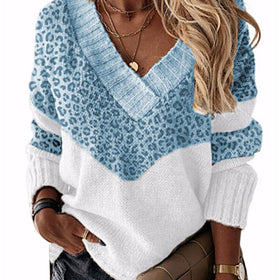 Damen modischer V-Ausschnitt Pullover mit Leopardenmuster Amawinc