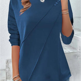 Erleben Sie den perfekten Mix aus Stil und Komfort mit unserem modischen Oberteil für Damen. Der asymmetrische Saum verleiht Ihnen eine moderne Silhouette, während die feinen Knopfdetails an der Schulter einen eleganten Akzent setzen. Hergestellt aus hochwertigem, atmungsaktivem Material bietet dieses Oberteil nicht nur ein angenehmes Tragegefühl, sondern ist auch ideal für verschiedene Anlässe.