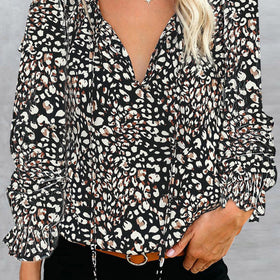 Dieses stilvolle Damenoberteil von Amawinc kombiniert Eleganz und trendigen Stil. Der V-Ausschnitt und die Rüschendetails verleihen dem Design eine feminine Note, während das auffällige Leoprint-Muster für einen modernen Look sorgt.