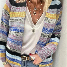 Damen Offen gestrickte Cardigan mit bunten Streifen und lässigem Schnitt Amawinc