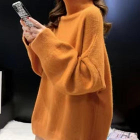Damen Oversized Pullover mit hohem Kragen und Puffärmeln Amawinc
