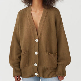 Damen Oversized Strickjacke mit Taschen und V-Ausschnitt Amawinc