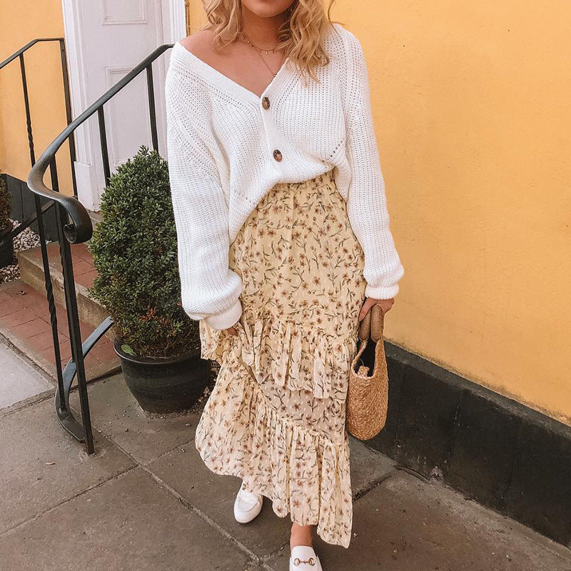 Damen Oversized Strickjacke mit tiefem V-Ausschnitt und nachhaltigen Holzknöpfen Amawinc