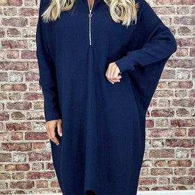 Damen Oversized Strickkleid mit Reißverschluss Amawinc