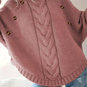 Damen Oversized Strickpullover mit Hochkragen und dekorativen Knopfdetails Amawinc