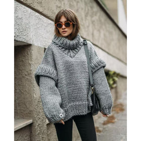 Damen Oversized Strickpullover mit hohem Kragen und voluminösen Ärmeln Amawinc