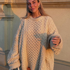 Damen Oversized Strickpullover mit Zopfmuster Amawinc
