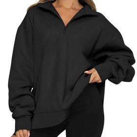 Damen Oversized Sweatshirt mit kurzem Reißverschluss und lässigem Schnitt Amawinc