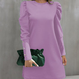Damen Puffärmel Minikleid mit elegantem Rundhalsausschnitt Amawinc