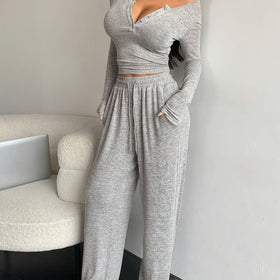 Damen Set aus lässigem Langarmoberteil und bequemen Palazzohose Amawinc