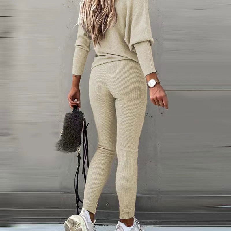 Damen-Set: Off-Shoulder Langarm-Top & Hose mit Kordelzug