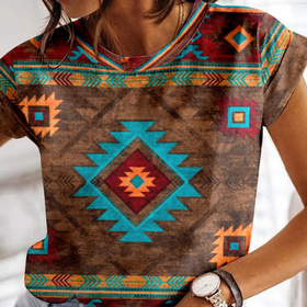 Damen Sommer T-Shirt mit Karomuster, Rundhals Ausschnitt von Fudus