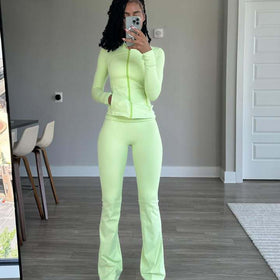 Entdecken Sie unser Damen Sportliches Fitness-Outfit, das für maximalen Komfort und Stil entwickelt wurde. Dieses moderne Ensemble kombiniert ein enganliegendes Langarm-Oberteil mit einem durchgehenden Reißverschluss und weiten Sporthosen, die perfekt für Ihre täglichen Aktivitäten oder das Fitnessstudio geeignet sind.
