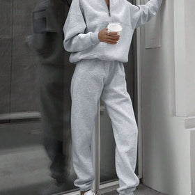 Damen Sportliches Freizeit-Set mit hohem Kragen und Reißverschluss Amawinc