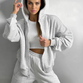 Damen Sportliches Oversized Sweatshirt und Jogginghose Set Amawinc