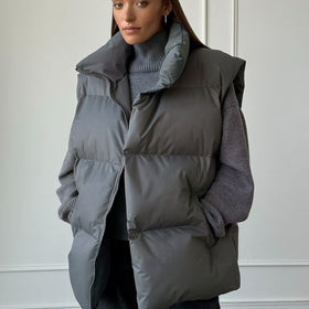 Damen Steppweste mit hohem Kragen und Taschen Amawinc