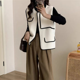 Damen Stilvolle Weste mit kontrastierenden Taschen und Knopfdetails Amawinc