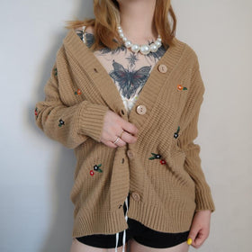 Damen Strickjacke mit buntem Blumenstickereien Amawinc