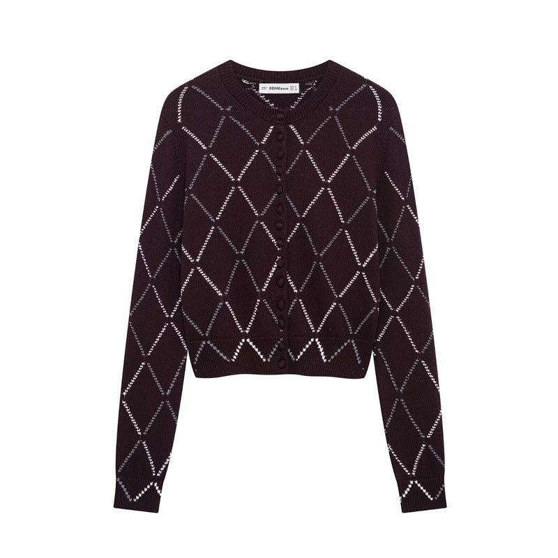 Damen Strickjacke mit elegante Rautenstruktur Amawinc