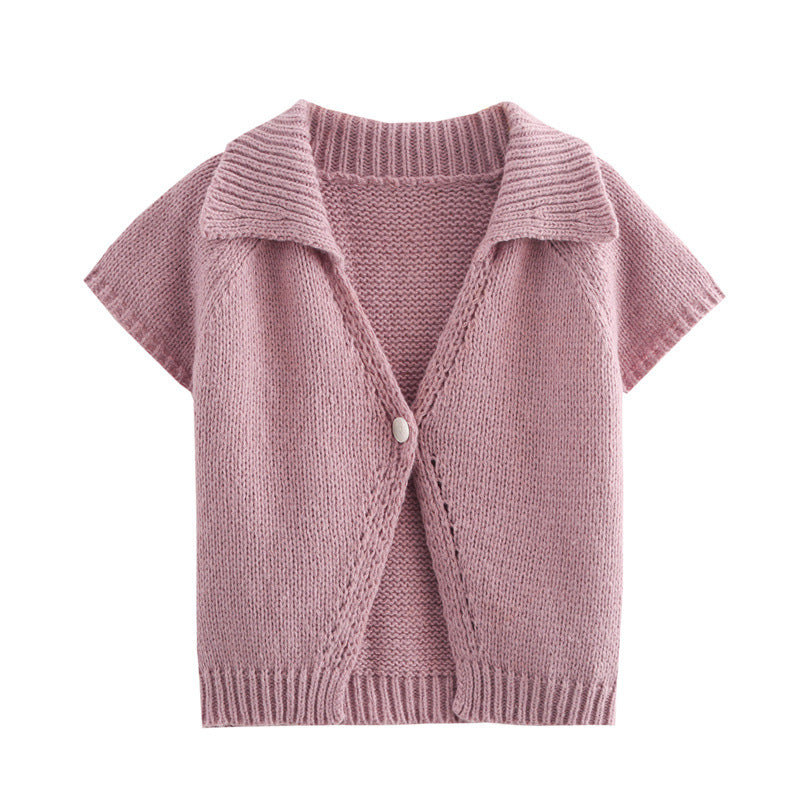 Damen Strickjacke mit elegantem Kragen und breitem Saum Amawinc