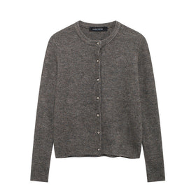 Damen Strickjacke mit feinen Knopfdetails und klassischem Rundhalsausschnitt Amawinc