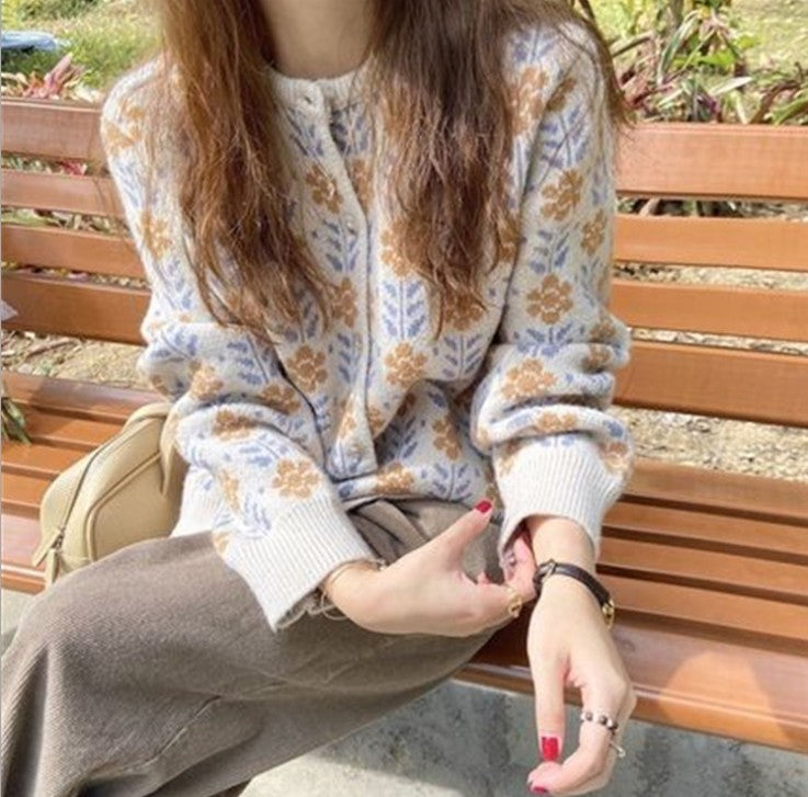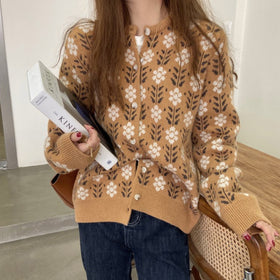 Damen Strickjacke mit floralem Muster und Knopfdetail Amawinc