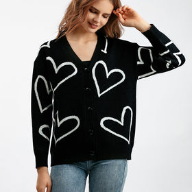 Damen Strickjacke mit Herzmotiv und lockerem Schnitt Amawinc