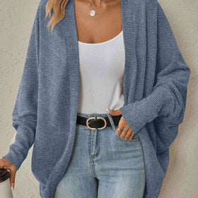 Dieser Offene Vorderseite Strickjacke mit abgesenkten Schultern verkörpert entspannten, modernen Stil. Die lockere Passform sorgt für Komfort, ohne den Look zu beeinträchtigen – ideal für einen lässigen Tag oder einen gemütlichen Abend. Die subtile Rippstruktur verleiht diesem vielseitigen Kleidungsstück einen eleganten Touch.