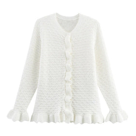 Damen Strickjacke mit Rüschendetails und Knopfleiste Amawinc