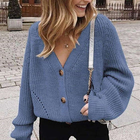 Damen Strickjacke mit tiefem V-Ausschnitt und Knöpfen Amawinc