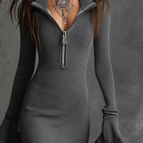 Damen Strickkleid mit elegantem Stehkragen und Reißverschluss Amawinc