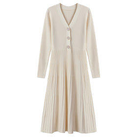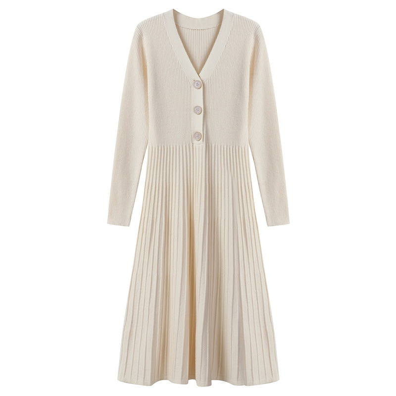 Damen Strickkleid mit Knopfverschluss und gerippter Struktur Amawinc